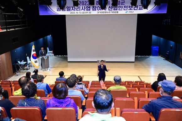 [고령군민신문=이상희기자] 고령군은 10월 13일, 대가야문화누리 가야금홀에서 공공근로사업, 지역공동체일자리사업, 청년 일자리 공공인턴사업 등 근로자 50명을 대상으로 올해 하반기 고령군 공공일자리사업 참여자 산업안전보건교육을 실시했다고 밝혔다.