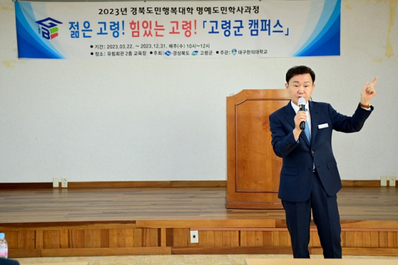 경북도민행복대학 고령군캠퍼스 운영 사업은 인문학, 미래학 등 7대 영역으로 구성된 1년 30주 과정의 명예학사과정으로, 수료 기준을 충족한 수강생에게는 명예도민학사학위(총장 도지사)를 수여한다. 군민 누구에게나 수준 높은 평생학습의 기회를 제공하는 도민행복대학 고령군캠퍼스는 지난 3월 40명의 수강생이 입학하여 올해 2년째 운영 중이다.