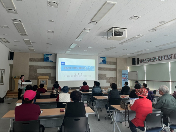지난 회차에서는 <대구경북 암생존자통합지지센터>와 연계하여 다니엘 운동 및 식이교육을 진행하고 암 예방관리 대한 교육을 실시하였다. 이날 프로그램에는 장애인뿐만 아니라 재가암 환자들과 가족들도 함께 교육에 참석하였다. 대구경북 암생존자통합지지센터는 암 예방을 위해서는 국가암검진의 중요성을 강조하였다. 암검진을 통한 조기발견이 매우 중요하며 조기발견 시 치료 가능성이 높아지고 생존률에 큰 영향을 미친다고 하였다.