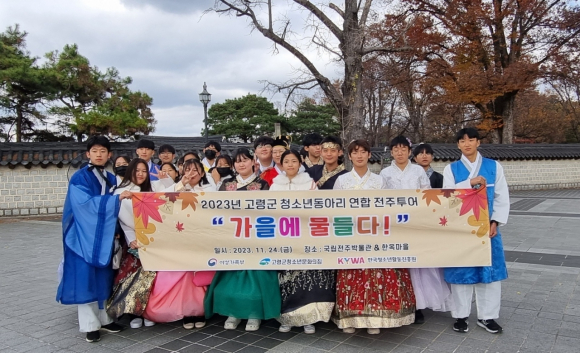 [고령군민신문=이상희기자] 고령군 청소년문화의집은 지난 24일(금) 관내 학교의 협조로 지역 청소년동아리 연합 전주 투어“가을에 물들다”활동을 진행했다고 밝혔다.
