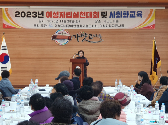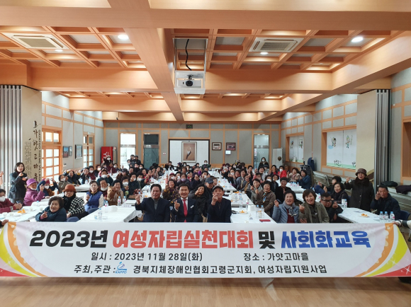 [고령군민신문=이상희기자] 고령군 지체장애인협회(지회장 김영옥 업무대행) 여성자립지원사업은 지난 11월 28일(화) 가얏고 마을에서 여성회원과 임원 및 자원봉사자 등 140여명이 참여한 가운데 소속감과 유대감을 형성하는 2023년 여성자립실천대회 및 사회화교육을 개최하였다.