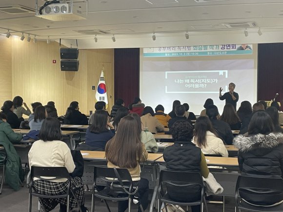 이날 강연은 자녀 독서교육에 관한 ‘독서교육’이 아닌 ‘독서문화’의 관점에서<실현가능하고 지속가능한 독서교육의 모든 것>이란 주제로 효과적인 가정에서의 독서교육법에 관해 심도있게 다루었다.