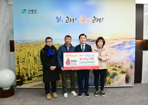 [고령군민신문=이상희기자] (사)고령군임업후계자협의회(회장 김도중)는 12월5일(화) 고령군청을 방문하여 이웃돕기 쌀 50포[10kg]를 전달하였다. 작년에 이어 두 번째 쌀 기탁이다.