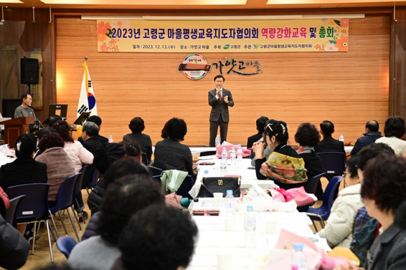 [고령군민신문=이상희기자] 고령군 마을평생교육지도자협의회(회장 이석호)는 12월 13일(수) 오후 16시부터 가얏고 마을에서 김홍철 수석부회장을 비롯한 임원, 지부장 및 지부회원 100여 명이 참석한 가운데 고령군 마을평생교육지도자협의회 회원 역량강화교육 및 총회를 개최하였다.
