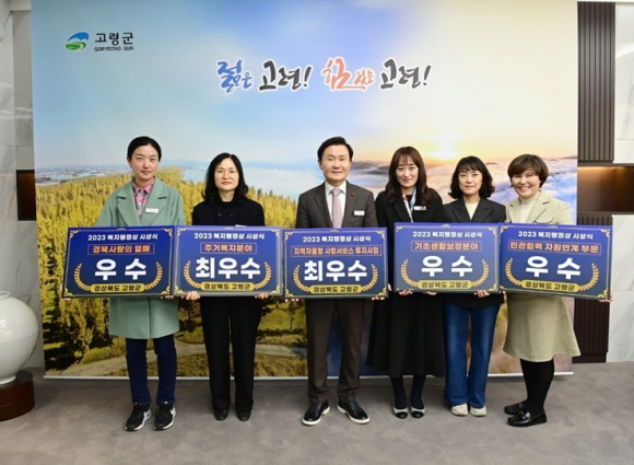 [고령군민신문=이상희기자] 고령군은 2023년 보건복지부 평가 2개 분야에서 우수기관으로 선정되어 2개의 복지행정상을 수상하고, 경상북도 복지사업 평가에서도 최우수 2개, 우수 1개 수상 등 총 5관왕을 달성하였다.