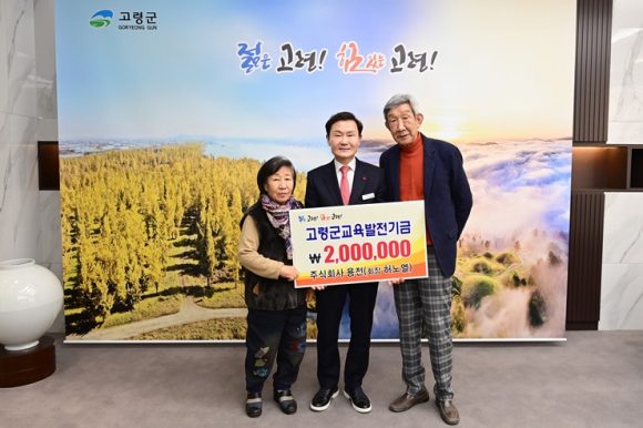 이남철 군수는 지역교육 활성화를 위하여 선뜻 큰 금액을 기탁한 주식회사 용전 허노열 회장에게 고마움을 표하고 “기탁해 주시는 소중한 기금은 우리 학생들에게 다양한 교육 혜택을 제공하기 위한 소중한 자양분이 되고 있다.”며 “앞으로도 고령 학생들이 도시 학생들에게 뒤처지지 않는 교육을 받을 수 있도록 고령군교육발전위원회를 지원하겠다.”고 답했다. 이상희기자