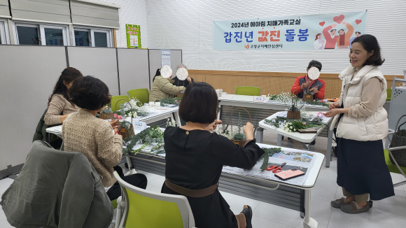 이번 치매환자 가족교실은 프로그램을 참석하고 싶었으나 낮시간에 프로그램이 진행되어 직장생활과 농사 등으로 참여하기 어려웠던 가족들을 대상으로 주1회 야간(18:30~20:30)에 진행이 되며, 프로그램이 종료된 후 치매환자의 보호자 상호 간 소통할 수 있는 자조모임「갑진년 값진 어울림」을 진행하여 돌봄 부담을 경감을 위한 자발적인 교류 활동을 촉진 시킬 예정이다.