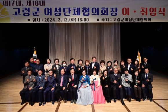 [고령군민신문=이상희기자] 고령군 여성단체협의회(회장 백신선)는 3월 12일(화) 오후4시 대가야문화누리 가야금홀에서 여성단체 회원 및 기관단체장 등 120여 명이 참석한 가운데 고령군 여성단체협의회 회장 이·취임식을 개최했다.
