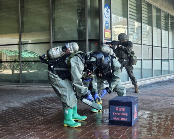 이어서, 군과 경찰이 수색정찰을 통해 식별한 적을 제압하고 공병 EHCT와 대구지방환경청 화학안전관리단, 화생방 CRST가 차례대로 투입하여 추가 폭발물 위험성 제거, 화생방 오염도 측정, 현장 제독을실시하며 훈련이 종료되었다.
