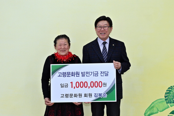 15여 년 전부터 고령문화원의 다양한 프로그램과 행사에 적극적으로 참여하고 있는 김복순 씨는 “그동안 고령문화원을 통해 받았던 행복감이 크다.”며, “고령문화원의 발전을 위해 작은 마음을 전하고 싶다.”는 뜻으로 이번에도 기부를 결정했다고 밝혔다.