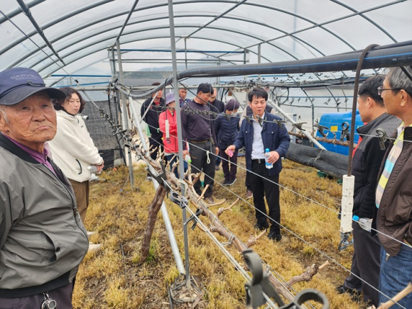 한편 농업기술센터에서는 신규 포도 재배 농가의 성공적인 정착을 위하여 포도 전문 지도사를 초빙하여 2022년부터 3년째 맞춤 교육을 실시하고 있다. 2023년 고품질 포도 생산을 위한 지역특화시범사업을 지원하며 본 사업에 맞추어 4월“월별 포도원 과원관리”, 5월 “화수정리실습 및 생장조정제처리 방법”, 6월“샤인머스켓 알솎기”교육을 실시하였다. 2024년에는 매달 1회씩 전문강사를 초빙하여 월별 포도과원 관리를 지도교육 할 예정이다.