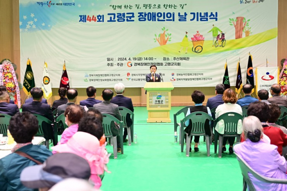 [고령군민신문=이상희기자]고령군은 4월 19일(금) 오후 2시에「제44회 장애인의 날 기념 행사」를 대가야읍 주산체육관에서 개최하였다. 이날 행사에는 관내 장애인과 가족, 고령군수, 군의원, 사회단체장 등 400여 명이 참석하였다.