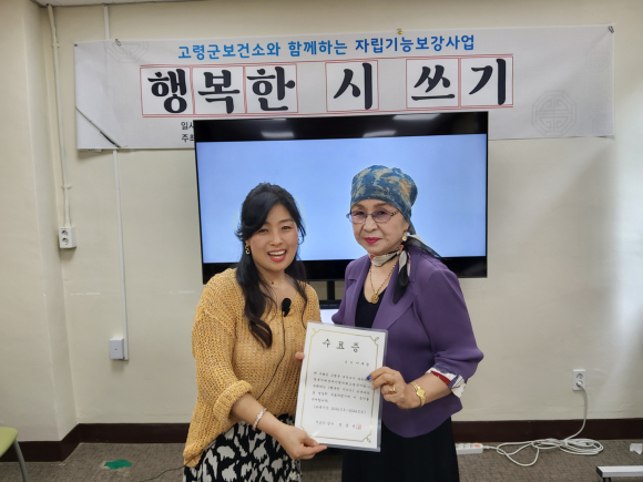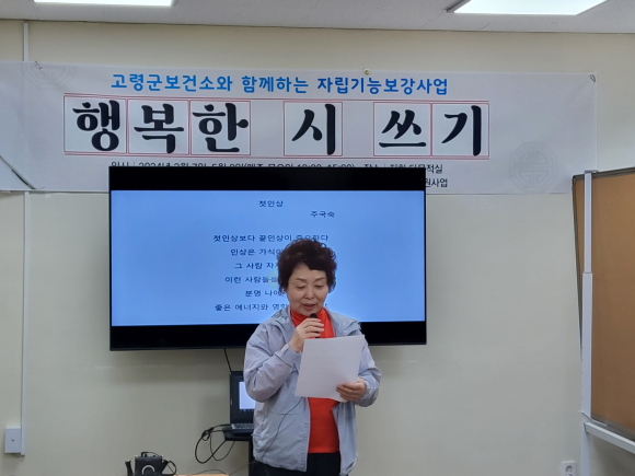 고령군보건소(소장 김곤수)와 연계하고 지역사회중심 재활사업의 일환으로 진행되었으며 ‘행복한 시쓰기’ 라는 슬로건으로 3월 7일부터 5월 9일까지 10회기를 교육하였다.