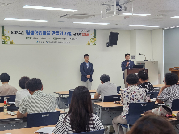 [고령군민신문=이상희기자] 고령군은 6월 13일(목) 14시 대가야문화누리 2층, 자활교육장에서 마을평생교육지도자협의회 각 읍면 지부장 및 평생학습마을 대상 8개소 마을리더(이장님), 마을별 주민, 읍·면 담당자 등 30명이 모인 가운데 ‘2024년 「평생학습마을 만들기 사업」관계자 워크숍을 실시하였다.