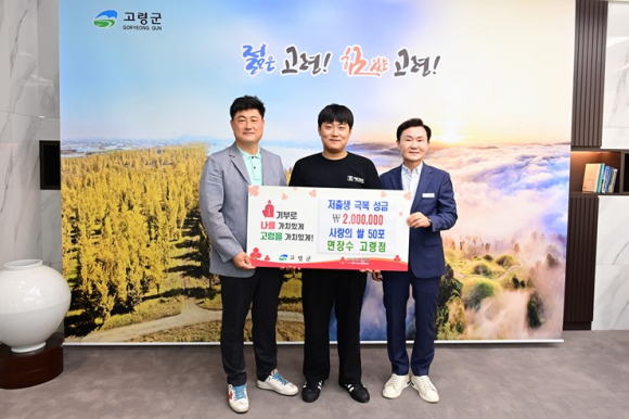 면장수 고령점(대표 김근형)에서는“관내에서 업체를 운영하면서 받은 사랑을 지역사회에 환원하고자 저출생 극복 성금을 기탁하였고, 저출생 문제 해결에 조금이나마 도움이 되었으면 한다”라고 말했다.