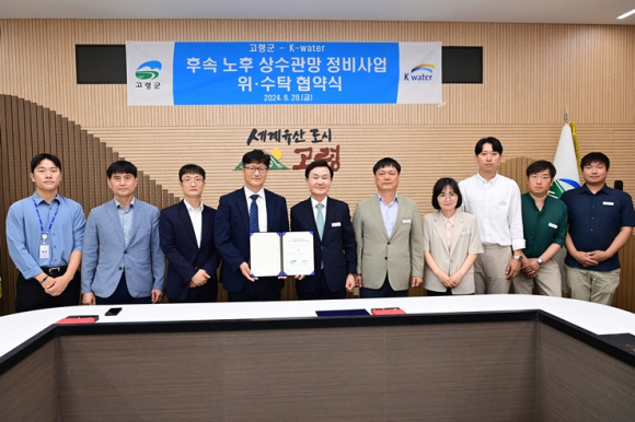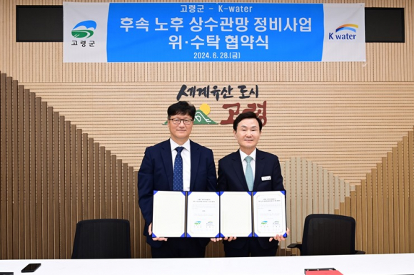 [고령군민신문=이상희기자] 고령군과 한국수자원공사(K-water) 낙동강유역본부(본부장 김세진)는 28일(금) 오전 10시 고령군청에서 노후 상수도 시설개선을 위한 ‘고령군 노후 상수관망 정비사업’ 협약을 체결했다.