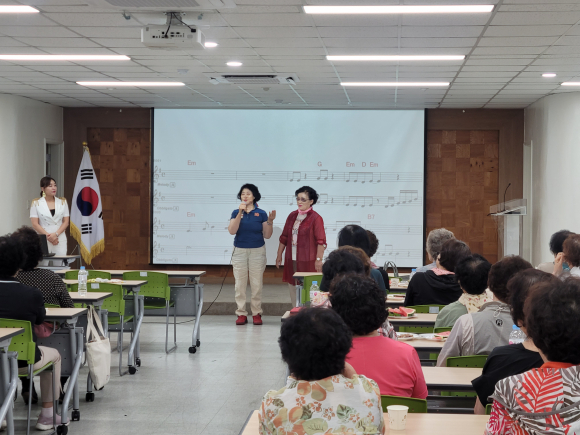 그동안 노래교실이 잘 운영될 수 있도록 힘써주신 곽미애 회장님과 김옥연 총무님 그리고 여러 회원님께 감사와 고마움을 전하며 내년 노래교실은 더욱 알차게 계획하여 즐거운 시간이 되고 생활에 많은 활력이 될 수 있도록 노력하겠다고 말했다. 이상희기자