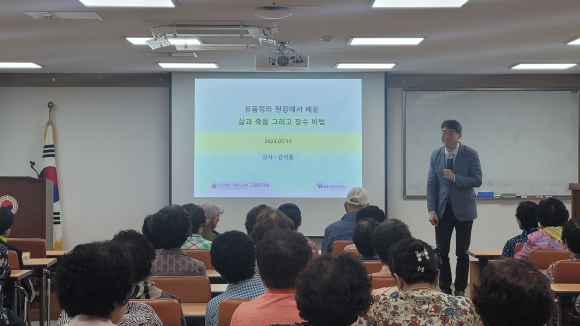[고령군민신문=이상희기자] (사) 대한노인회 고령군지회(지회장 백원치)에서는 80여명의 복지대학 학생들을 대상으로 07월 11일(목) 유품정리 현장에서 배운 삶과 죽음 그리고 장수 비법에대한 강의를 실시하였다.