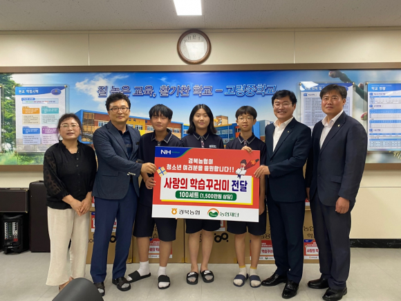 이 날 전달식에는 경북농협 임도곤 본부장, 농협고령군지부 이상용 지부장, 고령 중학교 김덕식 교장, 학생 대표 등이 함께 했다.