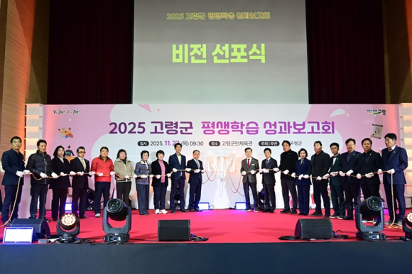 [고령군민신문=이상희기자] 고령군은 2025년 평생학습도시로 선정된 것을 기념하여, 평생학습도시 비전 선포식과 함께 한 해 동안의 평생학습 성과를 공유하고 지속 가능한 학습문화 공동체 구축을 위한 소통의 장을 마련하는 '2025 고령군 평생학습 성과보고회'를 11월 27일 군민체육관에서 성황리에 개최했다.