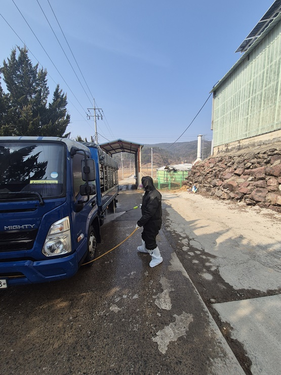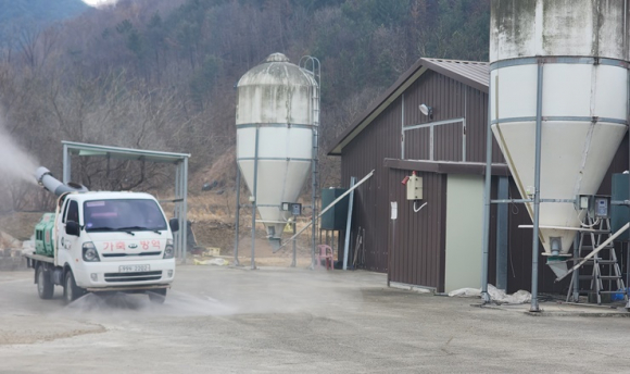 이에 고령군은 ▲거점소독시설 소독강화 ▲ 방제차 6대 동원 ▲ 소독약품 2,600kg 긴급 배부 ▲역학농가 이동제한 등 강도 높은 차단방역 조치를 시행하고 있다.