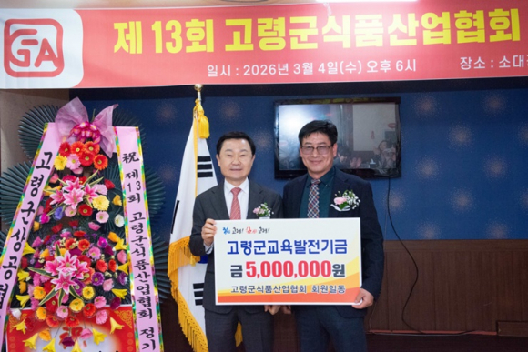 [고령군민신문=이상희기자] 고령군식품산업협회(회장 이진호)는 3월 4일(수)에 개최된 ‘제13회 고령군식품산업협회 정기총회’에서 지역의 교육 발전과 인재 양성을 위해 사용해 달라며 지난해에 이어 교육발전기금 500만원을 기탁하였다.