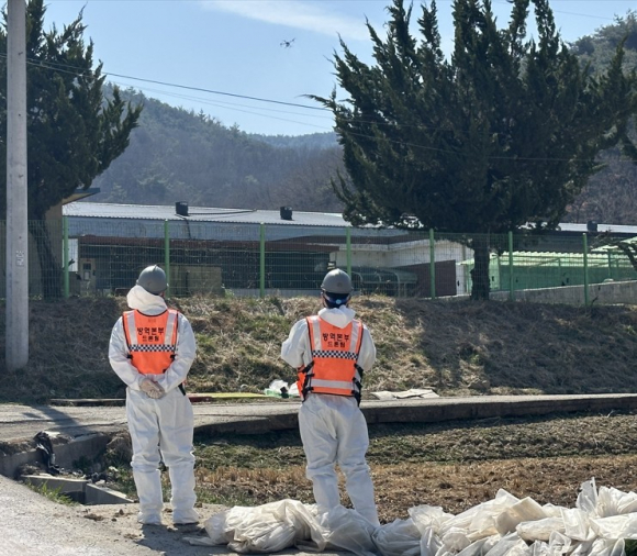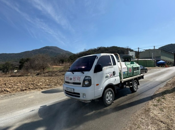 또한 축협공동방제단과 군 방제차량을 투입하고, 가축방역위생지원본부에 드론 방제를 요청해 발생지와 인근 농장에 대한 공동 방제를 실시하며, 멧돼지 기피제 살포와 소독 초소를 2개소 설치하여 사람과 출입 차량의 소독을 강화하고 있다.